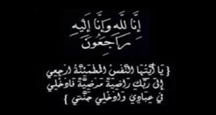 بقلوب مؤمنه بقضاء الله وقدرة انتقلت إلى رحمة الله بإذنه تعالى( فاطمة احمد سعد بودوخي )زوجه المغفور له باذن الله تعالى عبدالله احمد الرشيدوالدة مدير شرطة محافظة الجبيل العقيد أحمد بن عبدالله الرشيد و كلا من1-محمد2- عبدالستار3_ خالدوقد أقيمت الصلاة عليها والدفن بالمقبرة الشماليه بالمبرز اليوم الأحد بعد صلاة الظهروذلك بحضور ...