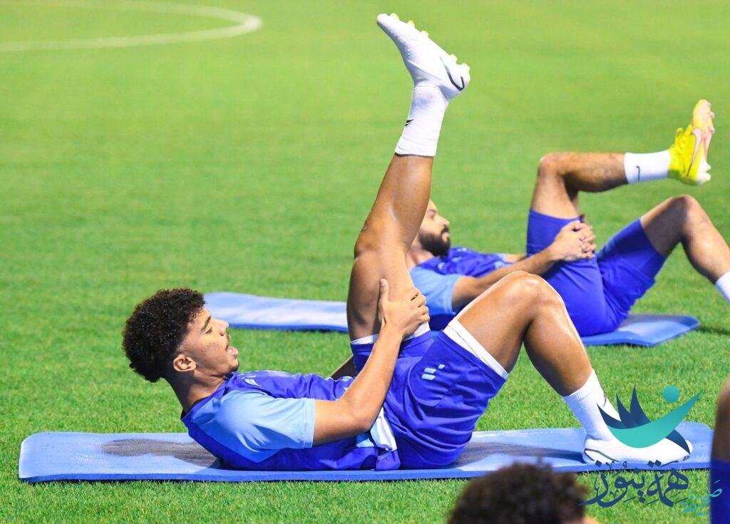 إنطلقت التدريبات بعمليات الإحماء بعدها قسم الجهاز الفني اللاعبين إلى ثلاث مجموعات طبقت كل مجموعة تدريبات متنوعة من خلال المرور بين الأقماع والقفز على الحواجز.