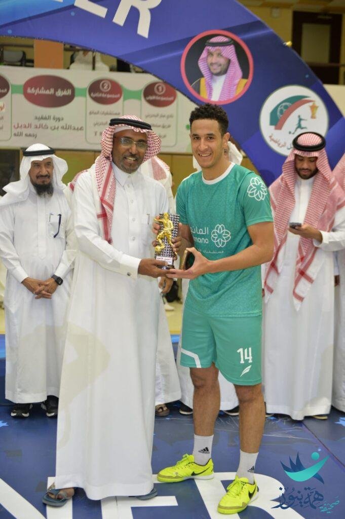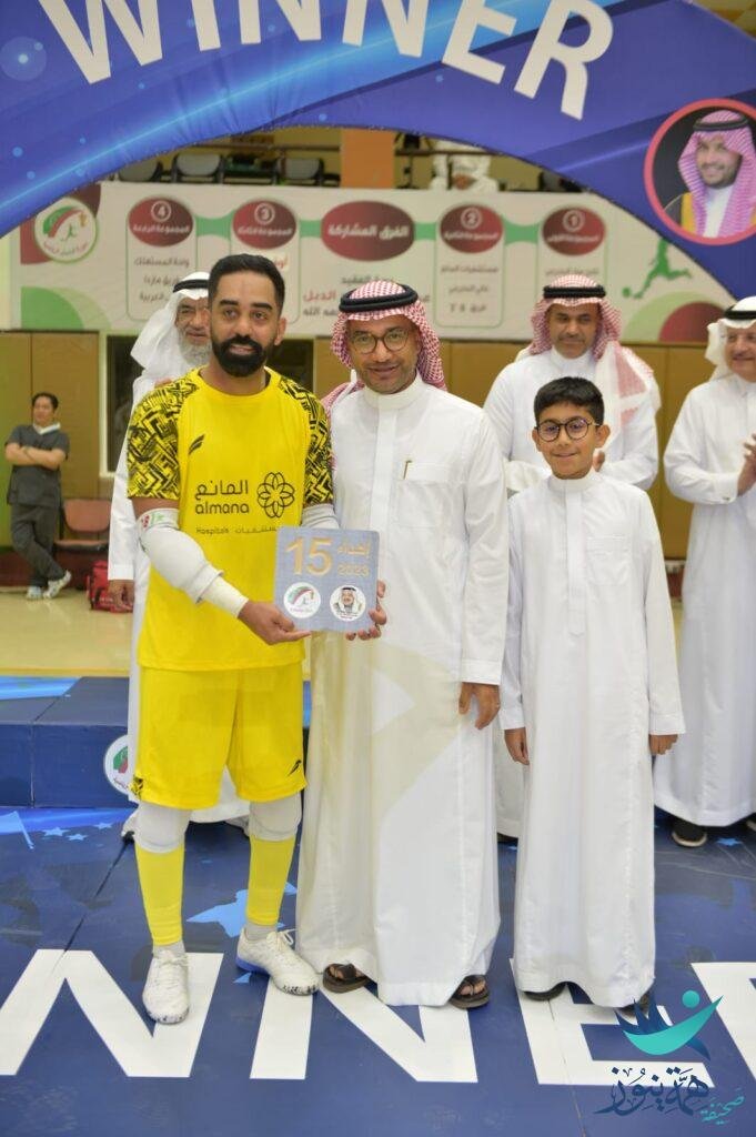 فتكريم افضل حارس : محمد عبدالمحسن ( واحة المستهلك ) سلمه اياها الاستاذ خالد الدباغ ، واخيرا تكريم اللاعب الذي شارك في جميع البطولات السابقة على مدى 15 عاما أسعد السعد ( المانع ) سلمه اياها المهندس خالد الدبل.