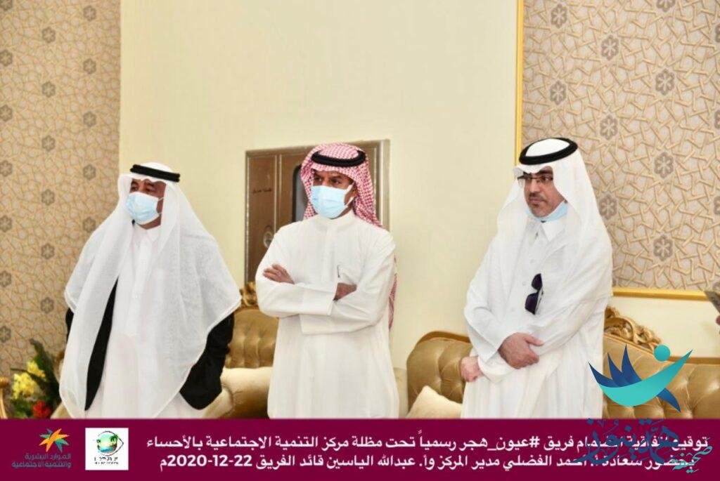أبرم مركز التنمية الإجتماعية بمحافظة الأحساء يوم الثلاثاء الموافق الثاني والعشرين من شهر ديسمبر 2020، ثلاث إتفاقيات شراكة مجتمعية لضم “لجنة حكام حواري الأحساء”، و “فريق همسات الثقافي التطوعي”، و “فريق عيون هجر الإعلامي التطوعي” تحت مظلته، وذلك بحضور مدير المركز الأستاذ “أحمد بن سعود الفضلي” وقادة الفرق الثلاثة “سامي الصقر” وهلال العيسى” و “عبدالله الياسين”، في مقر مركز التنمية الاجتماعية بالأحساء ..