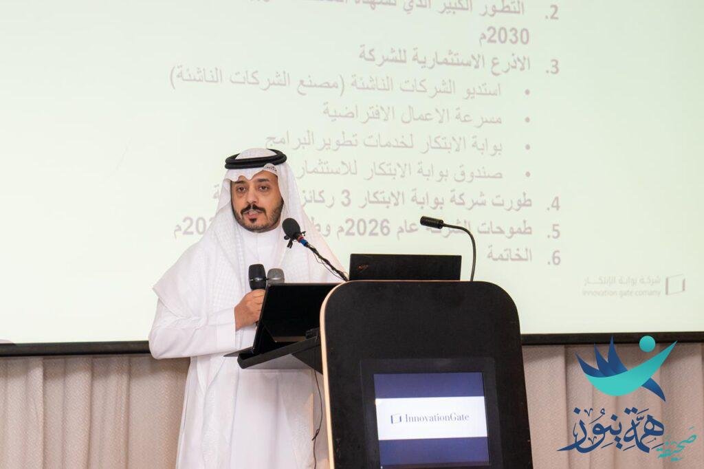 وأوضح، ان شـركة بوابـة الابتـكار تعمل جاهدة لتكون نموذجـا فريـدا مـن نوعـه, بمثابـة نظـام متكامـل, يأخـذ رائـد الاعمـال خلال مسـيرته إلى بر الأمان، لافتا الى ان أعمال بوابة الابتكار, ومساراتها, تتقاطع وبشكل مباشر مع رؤيـة ٢٠٣٠ وخاصـة فـي مجـال ريـادة الاعمـال, لدعـم القطـاع التقنـي، حيث تواكب مساهمة القطاع الخاص في الاقتصاد, وتسهل من ممارسة الأعمال, وتنمي من فاعلية الاقتصاد الرقمي وصولا إلى الهدف العام.. الاقتصاد المزدهر.