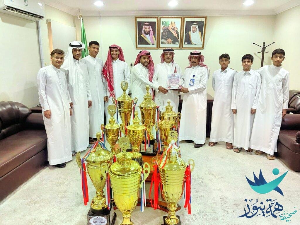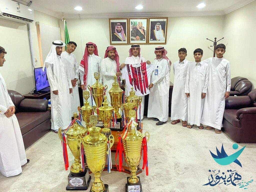 و أعرب سعادتة البالغة بهذه الزيارة الميمونة وحرص عليهم باتمام المسيره ليصبحوا أبطال في كرة القدم يمثلون مملكتنا الغاليه السعودية العظمى التي تحرص على تطوير الرياضة وبذل كل مايخدم الرياضية والرياضيين واوصاهم بالتحلي بالاخلاق الحميده و بالصلاة وطاعة ولي الأمر وعدم اتباع الجهات الظاله التي تهدم وتدمر الأسر والوطن وممتلكاتة والابتعاد عن مايفسد العقل وأردف قائلا انا معكم قلبا وقالبا وسعدت جدا بلقائكم