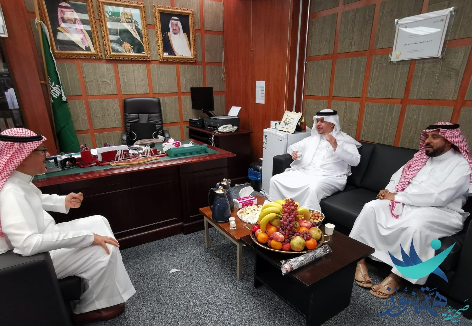 ومن ثم توجه إلى مكتب مدير المدرسة لتبادل أطراف الحديث وتقديم واجب الضيافة وفنجان القهوة السعودية الأصيلة..