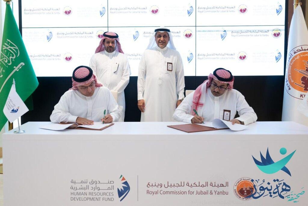 بحضور معالي رئيس الهيئة الملكية للجبيل وينبع المهندس خالد بن محمد السالم وسعادة المدير العام لصندوق تنمية الموارد البشرية تركي بن عبد الله الجعويني، وقّعت الهيئة الملكية للجبيل وينبع مذكرة تعاون مع صندوق تنمية الموارد البشرية، بهدف إيجاد تعاون استراتيجي مشترك بين الطرفين للإسهام في تنمية رأس المال البشري في القطاع الصناعي من خلال مبادرات وأدوات تقدم بالشراكة بين الجهتين. من أبرزها؛ التدريب على رأس العمل، والتدريب الالكتروني، ودعم نمو المنشآت الصغيرة والمتوسطة العاملة في القطاع، بالإضافة إلى تمكين القوى الوطنية العاملة في القطاع الصناعي عبر دعم تدريبهم ورفع مهاراتهم المهنية لتعزيز استدامتهم في سوق العمل ومواكبة تغيراته.
