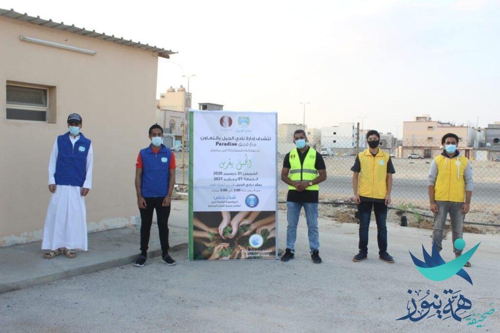 نظَّم فريق برادايز التطوعي التابع للمسؤولية الإجتماعية بنادي الجيل برنامجاً بعنوان ” الجيل يغرس ” وبمشاركة قوية من المؤسسة العامة للري بالأحساء ، والتي قدمت ” 300 شتلة ” ، حيث تم توزيع الشجيرات والشتلات في مواقع متفرقة من مقر النادي على مدى يومين و بمشاركة عدد كبير من المتطوعين و منسوبي النادي من إداريين و مدربين و لاعبين ، وتأتي هذه المبادرة إستمراراً لمبادرة التشجير في الأحساء وتعزيز الغطاء النباتي للتعريف بفوائد التشجير ومحاربة التصحر وطرق وأنظمة الري الحديث .