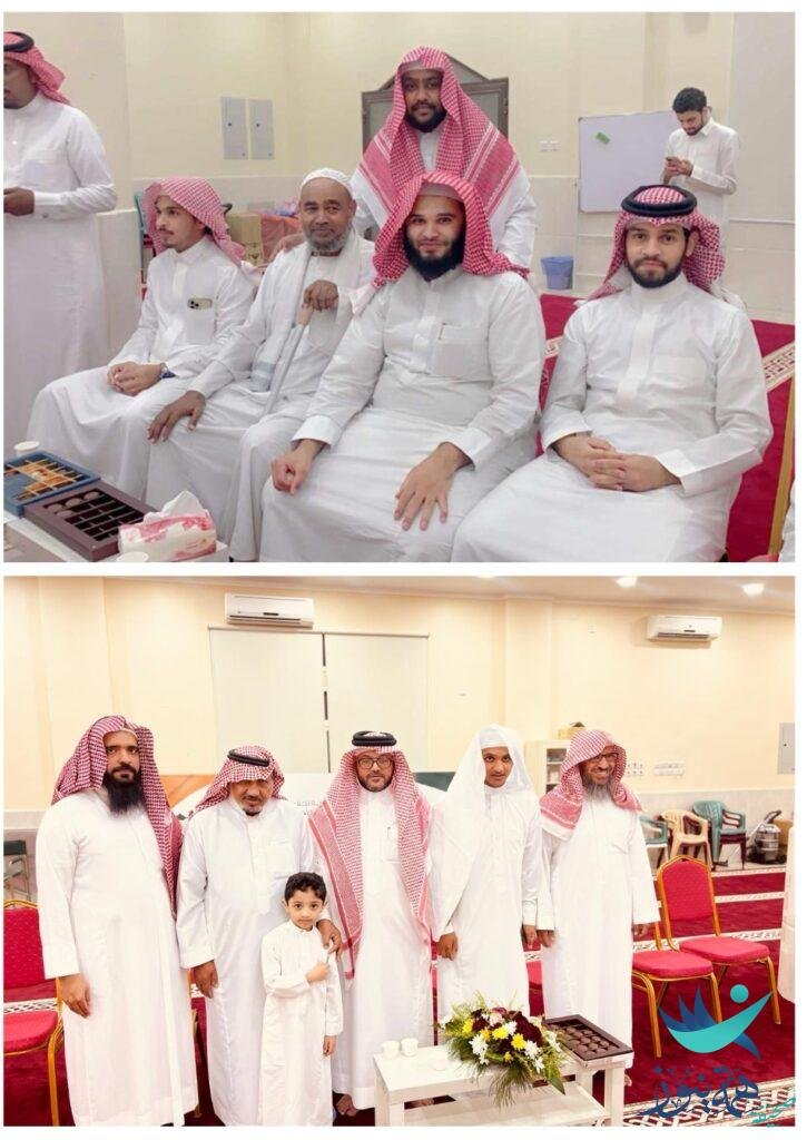 ثم استمع الجميع لختمة الطالب وبعدها تلقى الطالب ووالده التهاني والتبريكات في جو مفعم بالايمان والخشوع والفرح والسرور