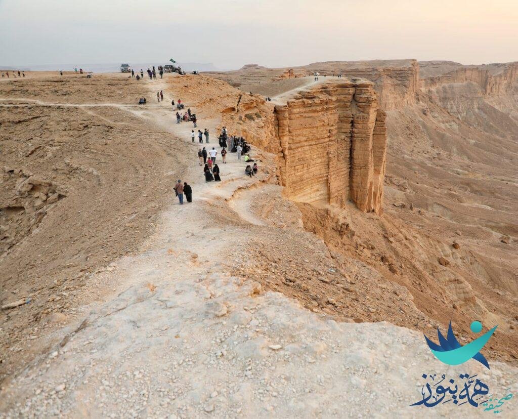 لحافة العالم وذلك بمشاركة أكثر من ٣٠متطوع ومتطوعة لتسلق جبل طويق السياحي وأوضحت رئيسة الفريق أ بدرية الشمري بأن الهدف من الزيارة التي تعد خطوه رائده في المجال التحفيزي لنظام وتخطيط المجموعة والتي تنم عن مخرجات البرامج المقدمة للمستفيدين من اعضاء الفريق أو الفئات المستهدفة في مجال العمل التطوعي .