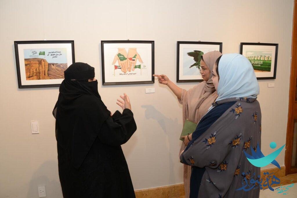 من جانبه أوضح مدير واحة الكاركاتير في هيئة الصحفيين الفنان أمين الحبارة بأن المعرض شارك فيه 57 فناناً من 18 دولة، وتضم 93 لوحة من بولندا والصين وكوسوفو ودول الخليج ومصر والمغرب وليبيا وموريتانيا ، وجميع اللوحات عبر عن الفرحة بمناسبة اليوم الوطني. وأشار الحباره إلى أن فكرة المعرض جاءت للتعبير بطريقة مختلفة عن حب الوطن للتعبير برسالة واحدة يعبر فيها الفنانون عن حبهم للمملكة.