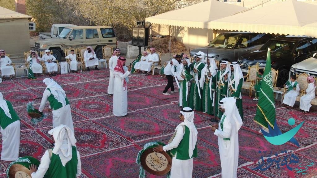 وقد أدى الجميع العرضة السعودية بمشاركة فرقة السريع للفنون الشعبية