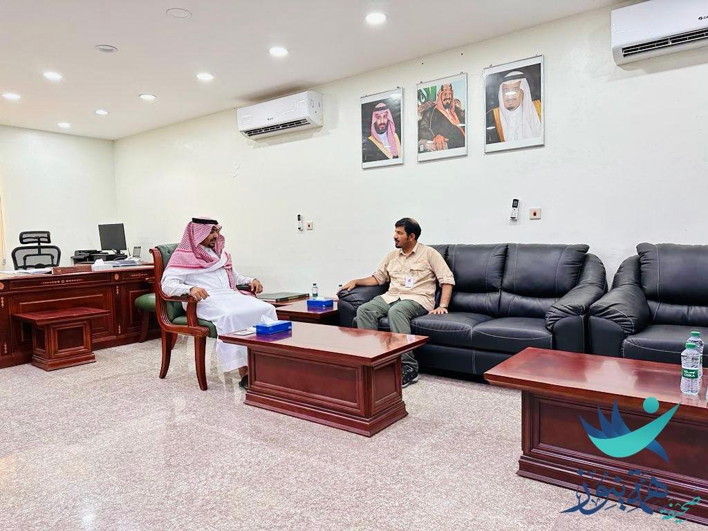 إستقبل سعادة محافظ العديد/ نايف بن فهد القوس بمكتبه بمقر المحافظه مشرف حماية الساحل الشرقي بالمركز الوطني لتنمية الحياه الفطريه/ فهد بن حمدان ال فهاد اليامي ، حيث قدم لسعادته شرحا عن اعمالهم ضمن نطاق المحافظه، وقد نوه المحافظ بالجهود التي يبذلها منسوبي المركز الوطني في الحفاظ على الثروه الوطنيه وتنمية الحياة الفطرية .