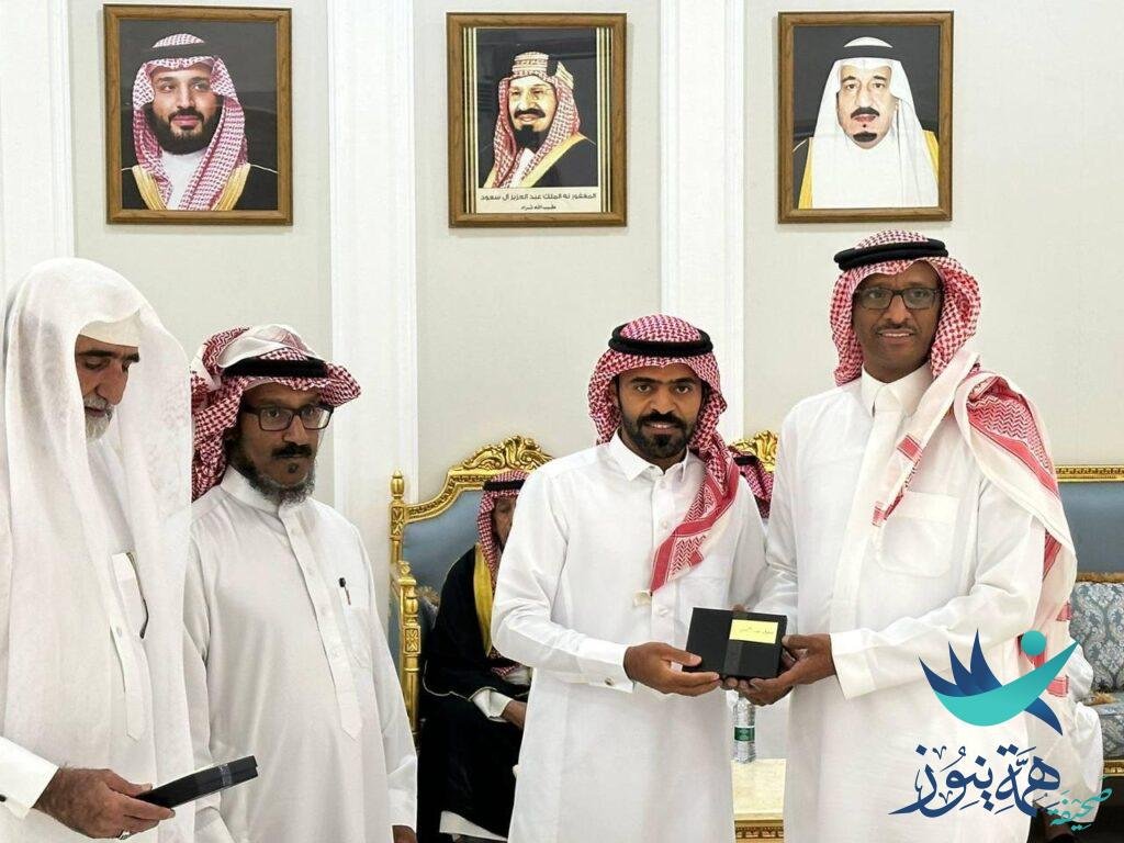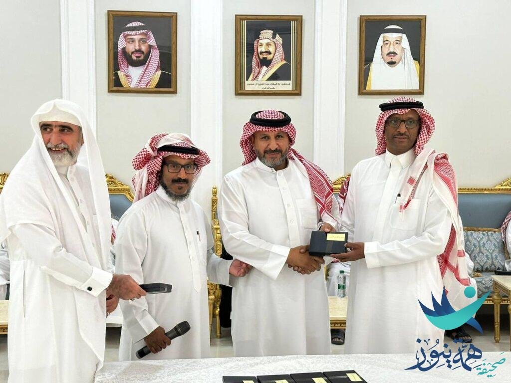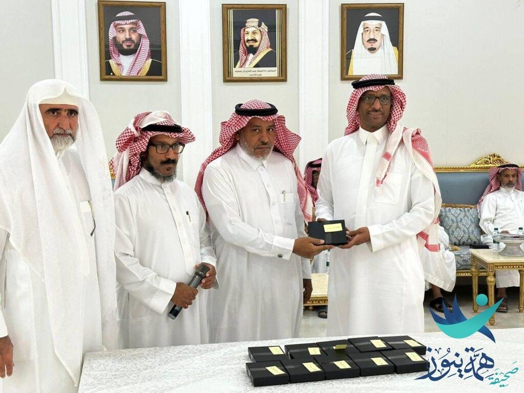بعد ذلك تم تسليم درع التكريم الخاص بالمجلس لعميد مجلس الحميد قدمه رئيس النادي نيابة عن اعضاء مجلس الادارة ثم تم توزيع هدايا تذكارية بسيطة لأهل المجلس ورواده