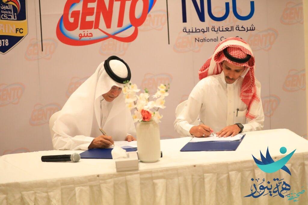 تم مساء قبل يوم أمس الثلاثاء ٢٤ اكتوبر حفل توقيع عقد رعاية رسمية بين نادي العين السعودي وشركه العناية الوطنية للتصنيع (جنتو) في مدينة الدمام وذلك بحضور رئيس مجلس ادارة نادي العين الاستاذ حسن بن دباج الزهراني والرئيس التنفيذي لشركة العناية الوطنية المهندس محمد نبيل وقد حضر حفل التوقيع مجموعة من اعضاء النادي وأعضاءالشركة ونخبة من الإعلاميين وتم خلال الحفل استعراض النهضة التي تمر بها المملكة في شتى المجالات التي تعنى بالقطاع الرياضي واهمية الاستثمار فيه وكذلك التعريف بعلامة جنتو كاواحده من العلامات الوطنية وأوضح المهندس محمد زنبيل باهمية هذه الشراكة الاستراتيجية مع نادي العين التي بدورها ستساهم في تطور كلا الشريكين بالاضافة الى التعاون بالانشطة الاعلامية.