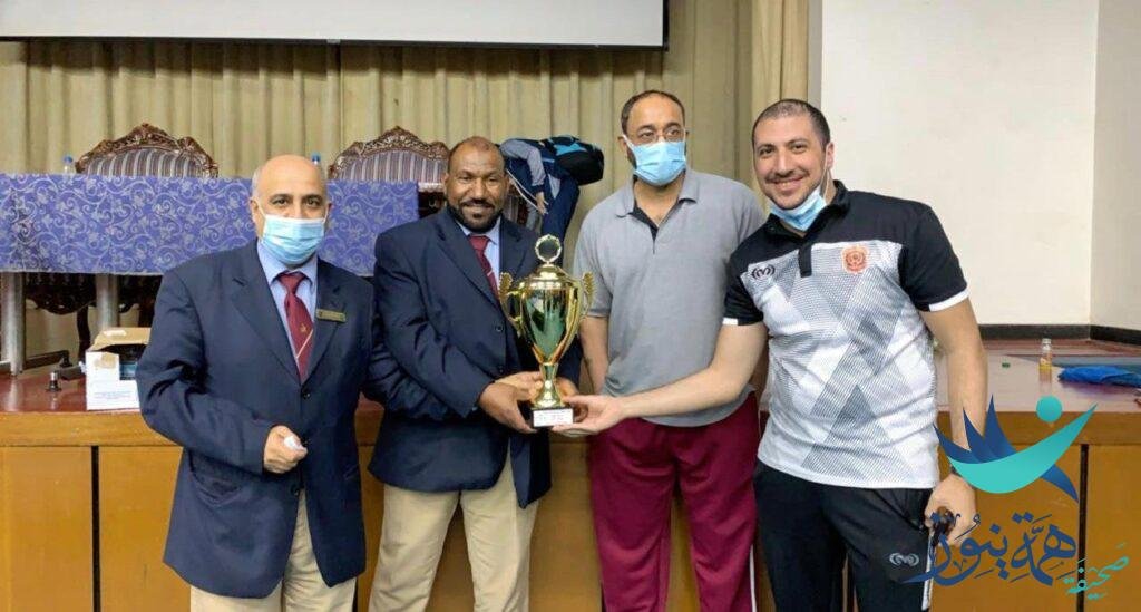 وتمت مراسم التتويج في نادي النهضة وقد مثل النادي مدرب الفريق الكابتن أحمد بونور .
