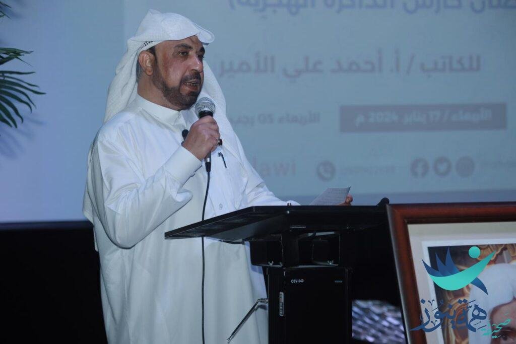ثم استعرض محاور الكتاب المحتفى به “جواد الرمضان حارس الذاكرة الهجرية”