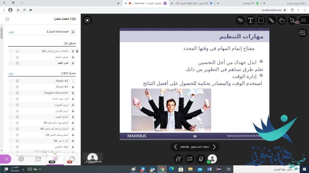 كما استعرضت ممثلة مركز طاقات الأستاذة معارج العنبر خلال البرنامج المهارات المكتسبة أثناء الالتحاق بسوق العمل، أخلاقيات العمل التي تساعد على الحصول على الوظيفة وتحقيق استمراريتها وأسس نجاحها، واختتمت بأثر أخلاقيات العمل على إنتاجية الموظفين والمنشأة.