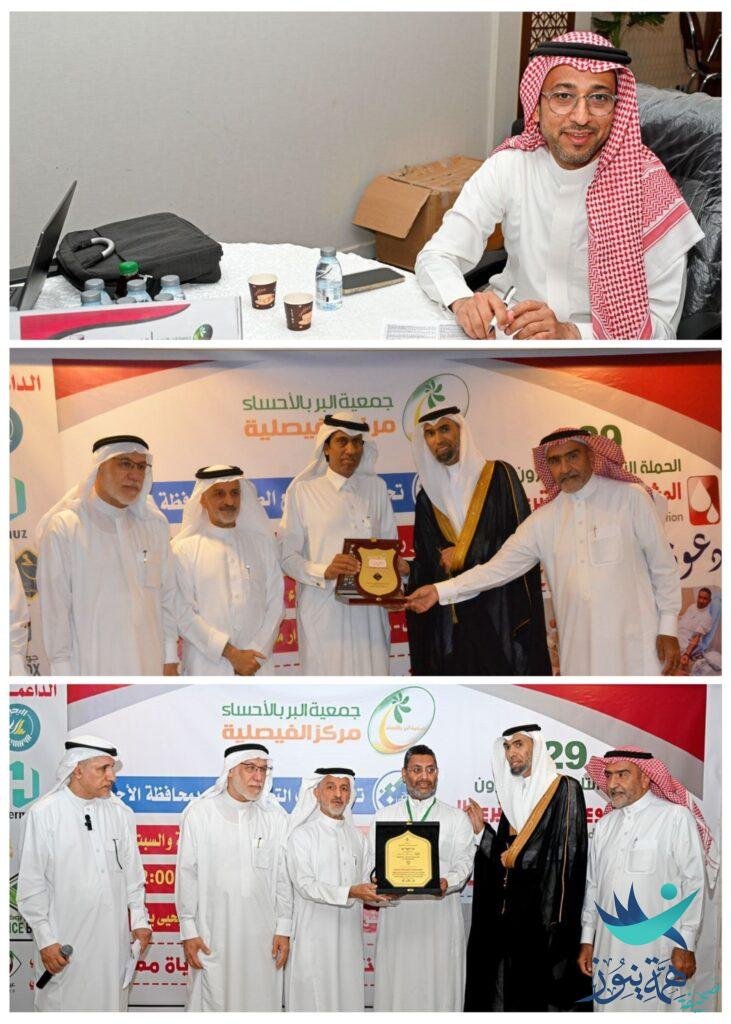 فيما عبر المشرف على المشروع الخيري للتبرع بالدم بالفيصلية الأستاذ مقداد بوخمسين عن سعادته بهذا الحضور الكثيف والتفاعل الكبير الذي سيسهم في دعم بنوك الدم بالمحافظة وتوفير الفصائل النادرة وقدم شكره لمجلس إدارة جمعية البر بالأحساء وعلى رأسهم صاحب السمو الملكي الأمير سعود بن طلال بن بدر آل سعود محافظ الأحساء وللتجمع الصحي وللطاقم الطبي ولجميع الداعمين والمتبرعين .