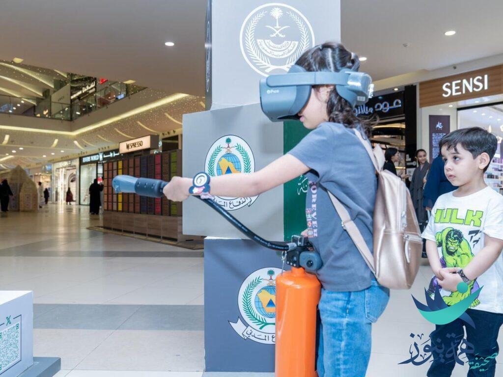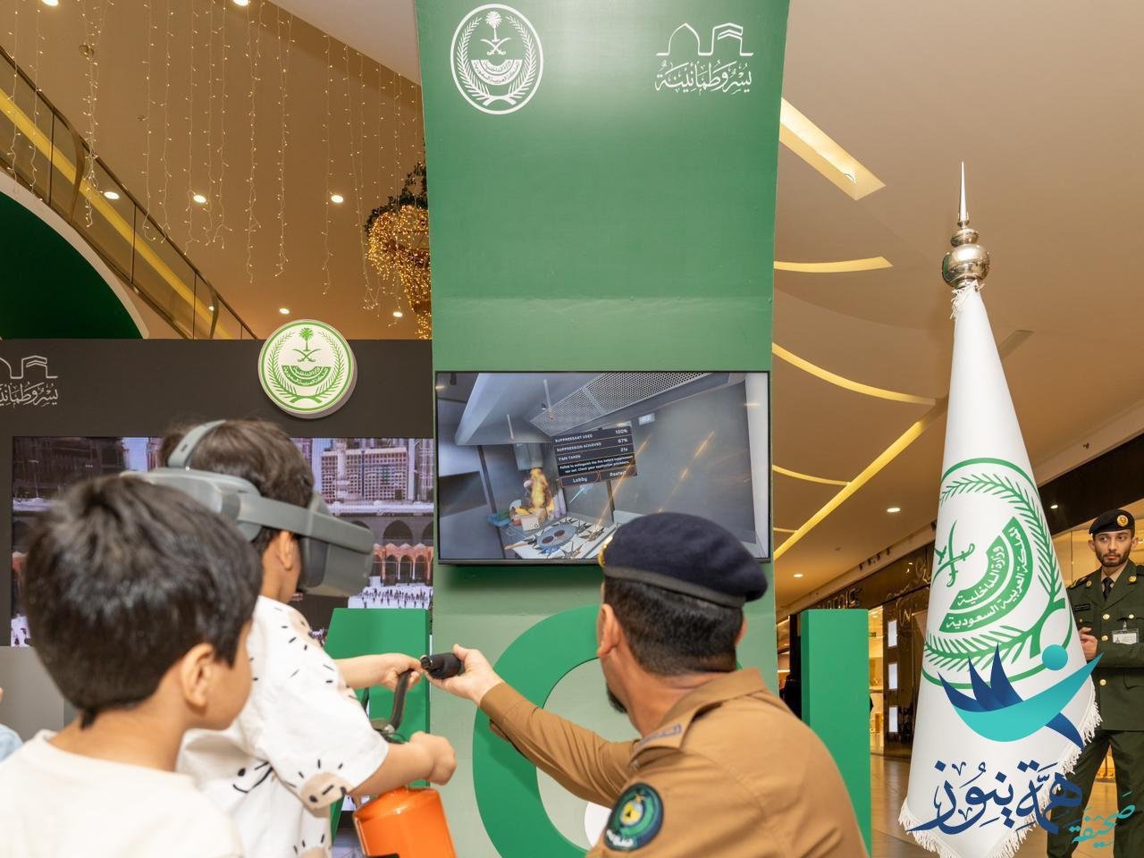 واستعرض الدفاع المدني للزوار، المهام والخدمات التي يقدمها لضيوف الرحمن، وتعزيز السلامة الوقائية وأنظمة السلامة والحماية من الحريق، وتقديم تجربة نقل الزائرين إلى محاكاة الواقع الافتراضي بمشاهدة فرضية حريق وهمي، والتعرف على أنواع الطفايات اليدوية وكيفية استخدامها، والإلمام بأنواع الحرائق وطرق إخمادها وكيفية التصرف أثناء حدوثها.