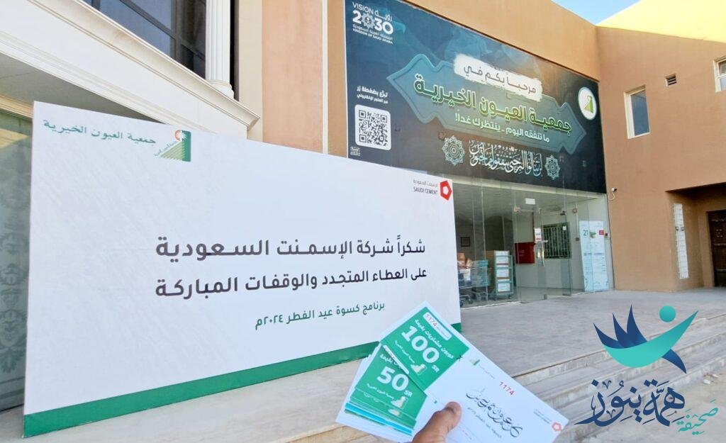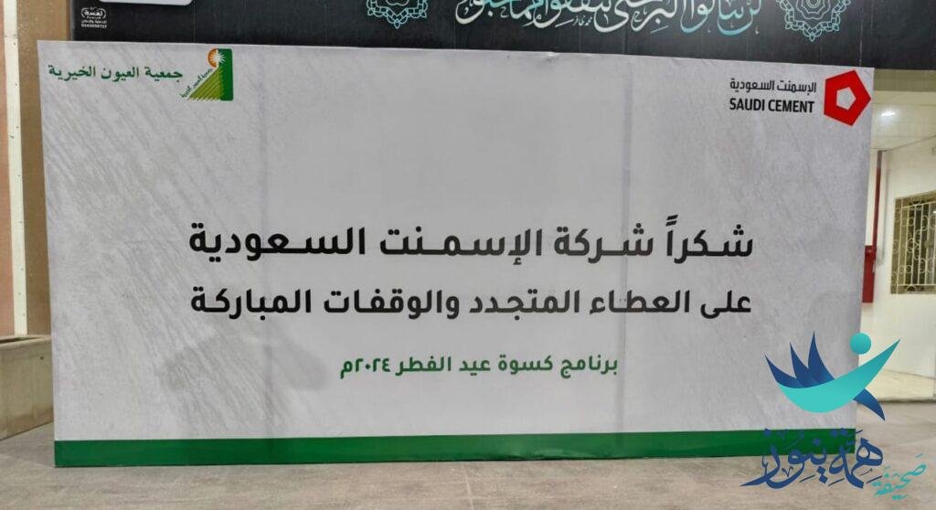 قدمت شركة الاسمنت السعودية دعماً سخياً لجمعية العيون الخيرية مساهمة من الشركة في برنامج كسوة العيد الذي يستهدف 509 أسرة مستفيدة ويهدف البرنامج إلى مساعدة الأسر في توفير مستلزمات العيد، ويأتي ذلك استمراراً للوقفات المباركة من الشركة مع الجمعية وأعرب رئيس مجلس إدارة الجمعية سعد بن حمد العيد عن وافر الشكر والامتنان للشركة التي تسهم من منطلق مسؤوليتها الاجتماعية بشكل نوعي لمساندة الأسر في هذه الأيام المباركة نظراً لما توليه من توجه يظهر تكاتف وتفاعل المجتمع مع الجمعيات والمؤسسات الخيرية وتفعيل الدور المجتمعي بشكل مؤثر من منطلق المسؤولية المجتمعية وشكر العيد شركة الأسمنت السعودية على جهودها المجتمعية وإسهامها في تنمية المجتمع عبر تفعيل برامج المسؤولية المجتمعية حيث قدمت الشركة دعمين سخيين للجمعية في هذا الشهر الكريم بمبلغ 266,647,76 ألف ريال للسلة الرمضانية وكسوة العيد 171,950 ألف ريال ، بمبلغ إجمالي للبرنامجين بلغ 438,597,76 ألف ريال