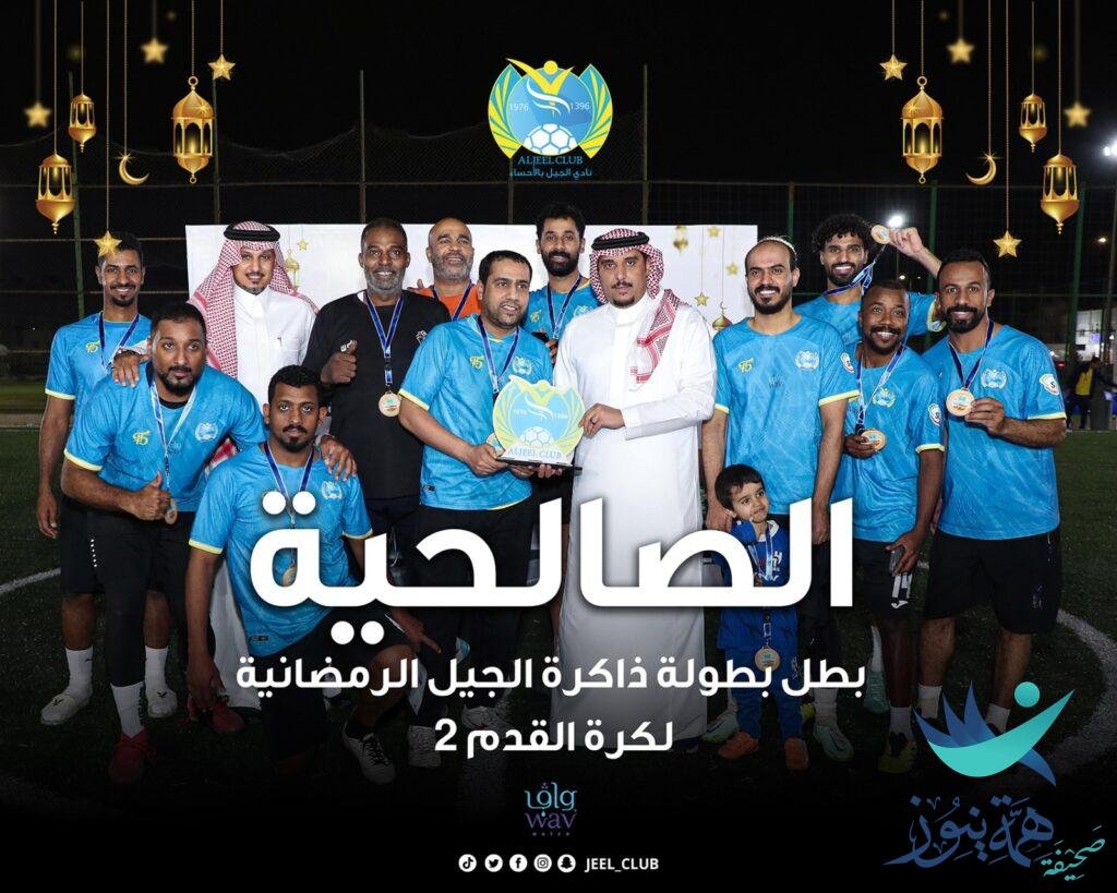 اختتم مساء أمس الأحد 28/9/1445 هـ بطولة ذاكرة الجيل الرمضانية، بعد أن توج رئيس مجلس إدارة نادي الجيل الأستاذ عمر بن مبارك بوعركة فريق الصالحية، بمشاركة 96 لاعبا قد مثلوا نادي الجيل السعودي لاعبا أو اداريا أو مدربا.