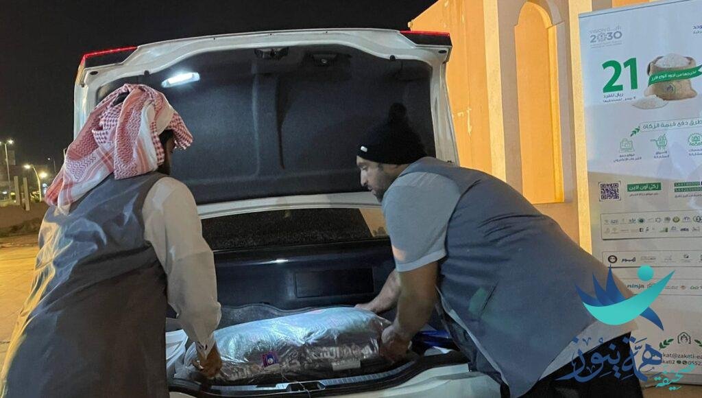 ٢٣٧٦ كيس أرز تفانى في توزيعها ٢٩ متطوع على ٥٠٩ أسرة ومستفيد