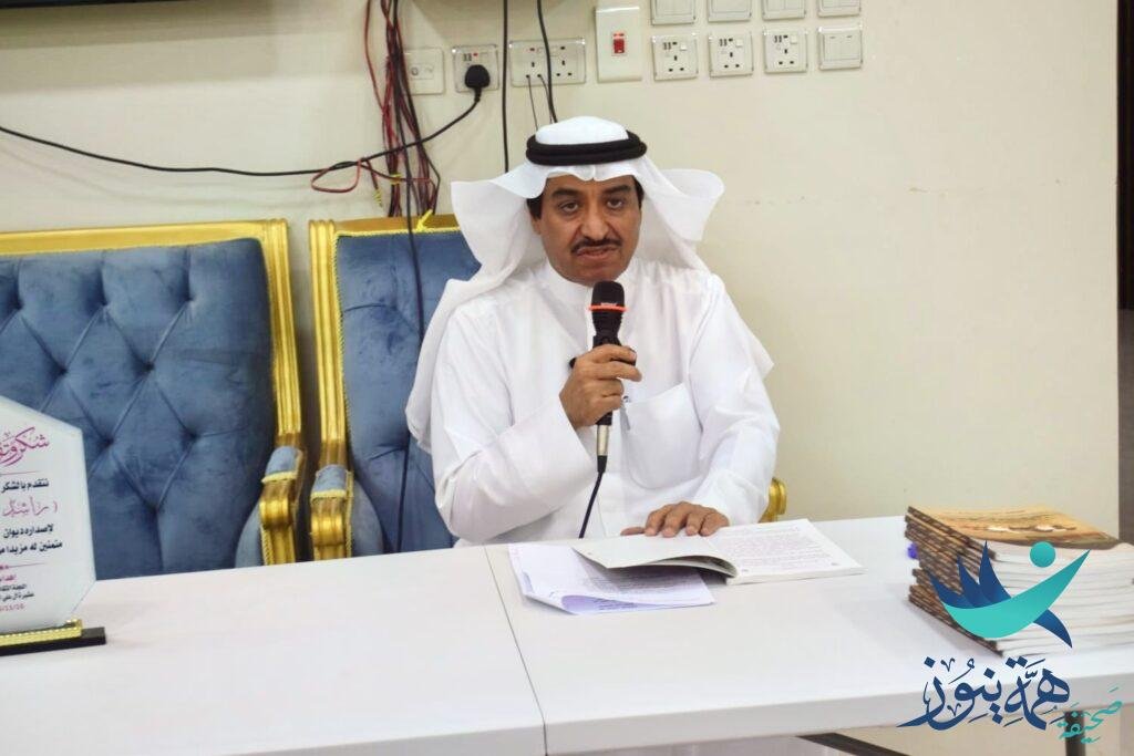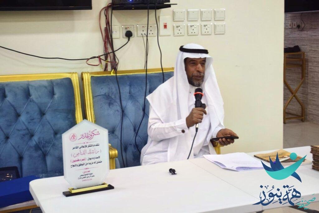 وبعدها كلمة المحتفى به القناص حيث قدم شكرةومتنانه لأسرة الفضلي التي غمرته بحبها وتكلم عن ديوان شعراء فضليون الذي قام بجمعه واعداده وما يحتوي عليه من قصائد جزلة وشعراء مميزين