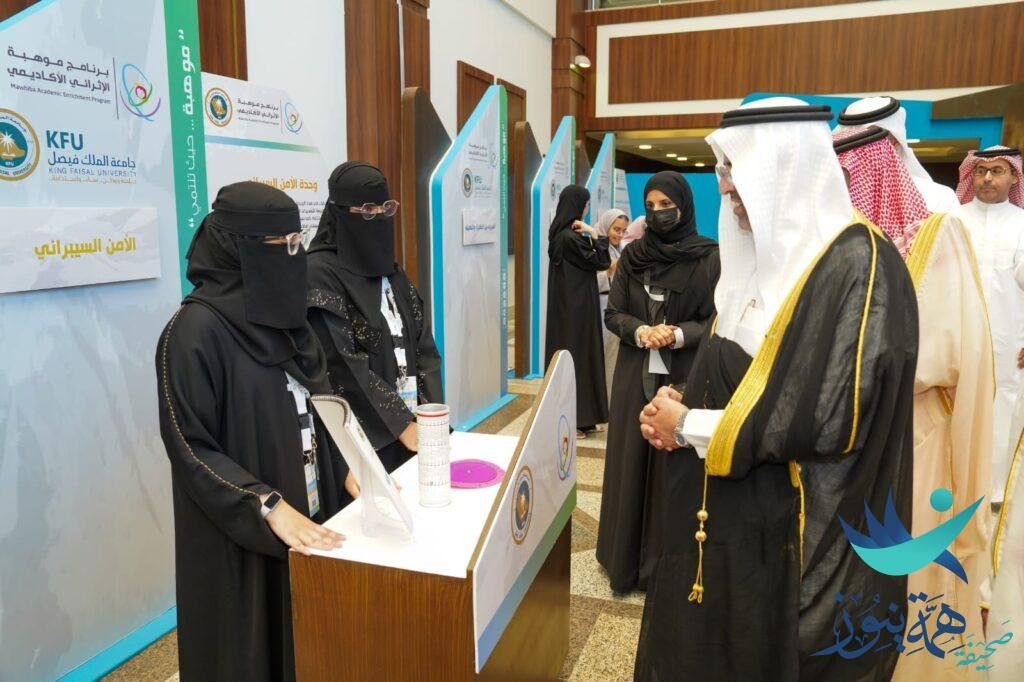 بدورها أشارت سعادة رئيسة برنامج موهبة الإثرائي الأكاديمي الدكتورة بنا بنت جويعد السبيعي في كلمتها إلى أن جامعة الملك فيصل قدمت جميع التسهيلات اللازمة مما ساهم في خلق بيئة تعليمية مثالية لتحقيق أهداف البرنامج بالإضافة إلى جهود مؤسسة الملك عبدالعزيز ورجاله للموهبة والإبداع حيث تعد مساهمتهم ركيزة أساسية في تمكين الطلاب من اكتساب المعرفة والتطوير وتحقيق طموحاتهم الأكاديمية والبحثية.