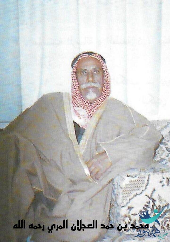 محمد بن حمد بن علي بن صالح بن عجلان بن علي بن حمد بن عجلان بن زيد بن بريص بن راشد بن غفر بن شبيب المري.