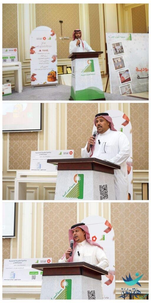 بعد ذلك كلمة رئيس مجلس الإدارة سعد بن حمد العيد رحب خلالها بالحضور الكريم وشكر لهم تشريفهم ومواقفهم المبهجة كما شكر شركة الاسمنت السعودية على دعمها السخي ووقفاتها الرائدة التي تسهم بشكل مميز في تنفيذ برامج الجمعية وأشاد بالتعاون المستمر من شركاء النجاح ، هذا وأوضح العيد بأن المشروع يهدف إلى مساعدة الأسر المستفيدة وتحفيز الطلاب والطالبات على التعليم مزامنة مع انطلاق العام الدراسي وأكد على أن المشروع يقوم على تجهيز ٥٦٥ حقيبة مدرسية ، ٢٩٦ مريول ، ٢٦٩ ثوب لمختلف المراحل الدراسية لأبناء الجمعية الأيتام وأبناء المستفيدين