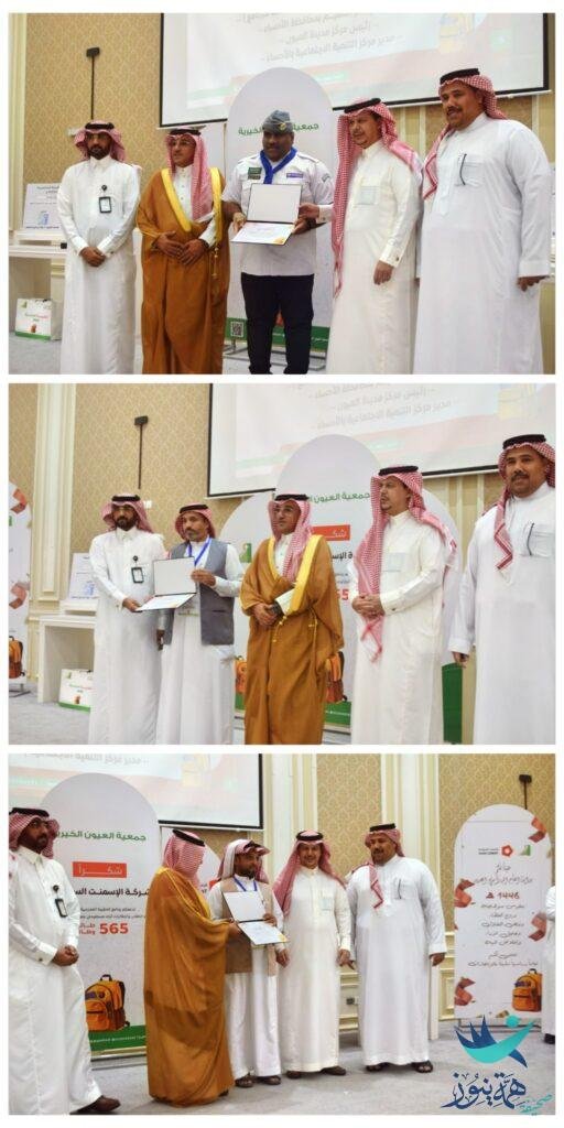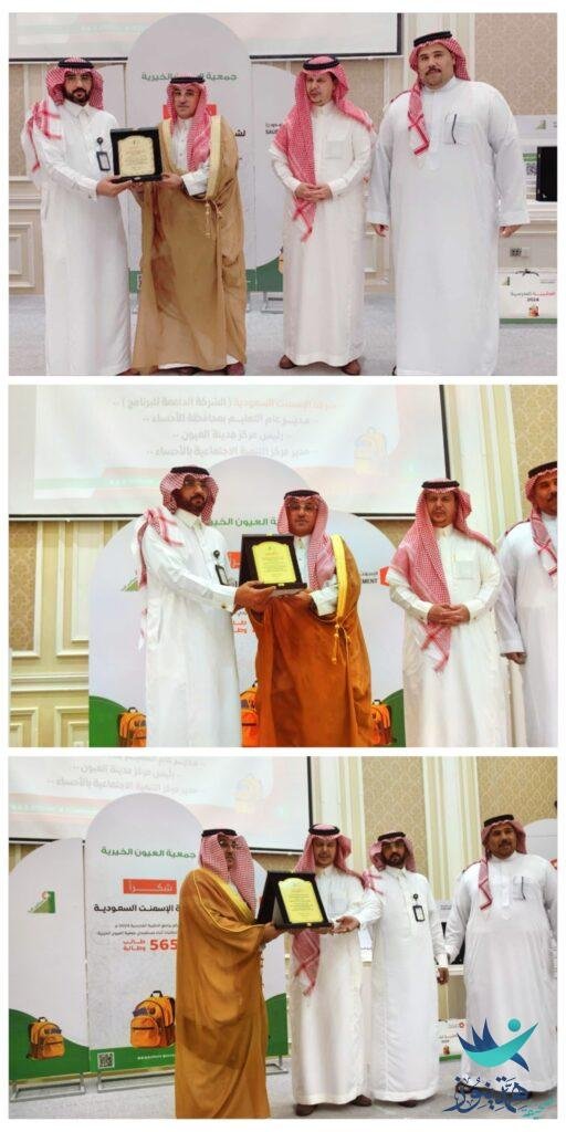مؤكداً على أن التعاون بين القطاع الربحي والغير ربحي والعام يحقق أثر وتميز اكبر وتمنى للطلاب والطالبات عام دراسي حافل بالتميز ، تبع ذلك تكريم شركة الاسمنت السعودية على دعمها السخي تسلمه مدير الاتصال المؤسسي الأستاذ عبدالله الغنيم بحضور وفد من الشركة كما كُرِم مدير عام التعليم ومدير التنمية الاجتماعية بالأحساء ورئيس مركز مدينة العيون وفريق العيون التطوعي ومجموعة فينا خير تبع ذلك اطلاق الرسائل النصية من قبل مدير التعليم لدعوة المستفيدين للتوافد للجمعية لمدة أربعة أيام لاستلام الحقيبة حسب الخطة المعدة بذلك مع كوبونات المريول المدرسي والثوب واختتم مقدم الحفل حديثه بشكر الجميع على كرم التواجد والتقطت صورة جماعيًا تبع ذلك شرح من مدير وحدة التطوع علي بن حمد الفارس لخط سير التجهيزات والتوزيع وشارك المسؤولين في تجهيز عدد من الحقائب وسط سعادة الجميع بجودة مايقدم والاعداد المميز للمبادرة .