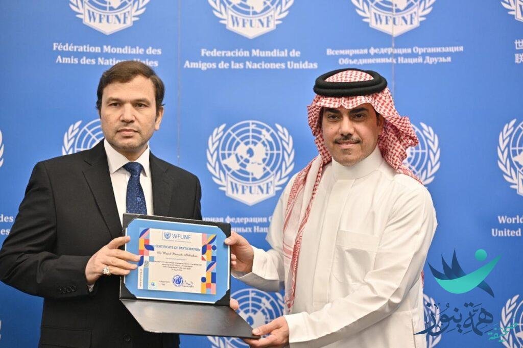 بحضور صاحب السمو الملكي الأمير فيصل بن عبدالرحمن بن ناصر آل سعود منحت منظمة الأمم المتحدة م. عباس بن حمزة البراهيم سفيراً للنوايا الحسنة في القيادة الناجحة في منظمة الأمم المتحدة WF UNF خلال المؤتمر الدولي الذي أقيم في العاصمة المصرية القاهرة بالإضافة إلى منصبه السابق كمدير إقليمي للمنظمة الأمم المتحدة للاستشارات الإعلامية والدولية un mtc جاء ذلك خلال الحفل الذي أقيم مساء اليوم الخميس الموافق 8 / 8 / 2024 م حيث تم تكريمه بـ درع المنظمة وشهادات تنصيبه سفيرا للنوايا الحسنة ، وشهادة مدير إقليمي لمنظمة الأمم المتحدة بمنطقة الخليج العربي في un mtc .