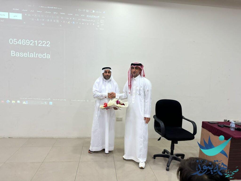 من جانبة عبر العبد الوهاب عن بالغ شكره للجميع وقدم شهادة شكر للمدرب تكريماً له.