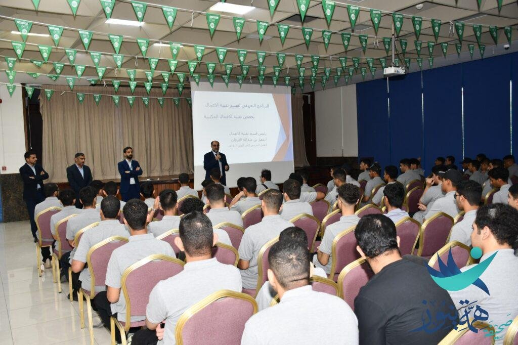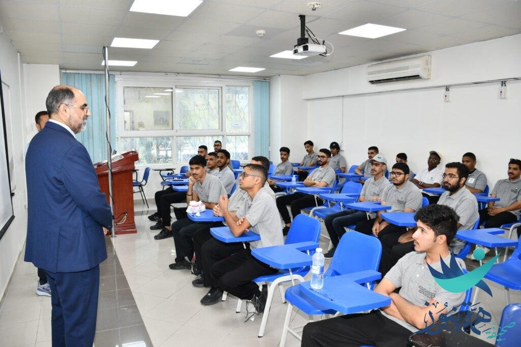 وعلى هامش الزيارة التقى القحطاني بالمتدربين المستجدين بالفصل التدريبي الأول للعام 1446هـ والبالغ عددهم ( 545 ) متدرب وذلك ضمن برنامج أسبوع التهيئة وألقى كلمة توجيهية وإرشادية بارك لهم من خلالها قبولهم في الكلية التقنية بالقطيف والتي اعتبرها من الكليات التقنية المميزة ، كما حث المتدربين المستجدين على الجد والمثابرة والتحلي بالأخلاق الفاضلة والانضباطية.