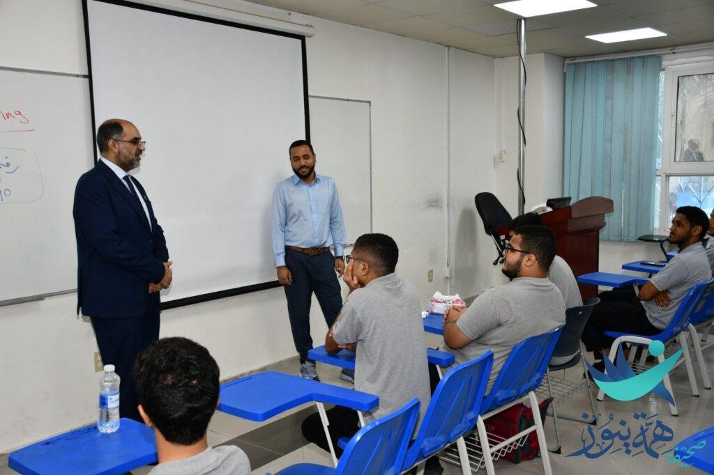 واطلع خلال زيارته على سير العملية التدريبية التي انطلقت منذ اليوم الأول ومدى جاهزية الكلية لبدء التدريب كما تفقد القاعات التدريبية والمعامل والتقى بالمدربين والمتدربين وقدم شكره لهم على هذا النشاط المميز والتفاعل من اليوم الأول للتدريب .
