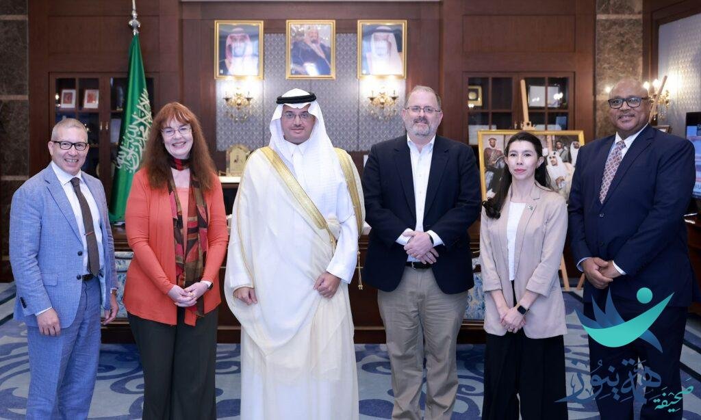 استقبل صاحب السمو الملكي الأمير سعود بن طلال بن بدر محافظ الأحساء ، بمكتب سموّه بمقر المحافظة اليوم “ الأحد “ ، نائب سفير الولايات المتحدة الأمريكية لدى المملكة أليسون ديلورث ويرافقها القنصل الأمريكي بالظهران جيمس سيندل ، وجرى خلال اللقاء تبادل الأحاديث الودية