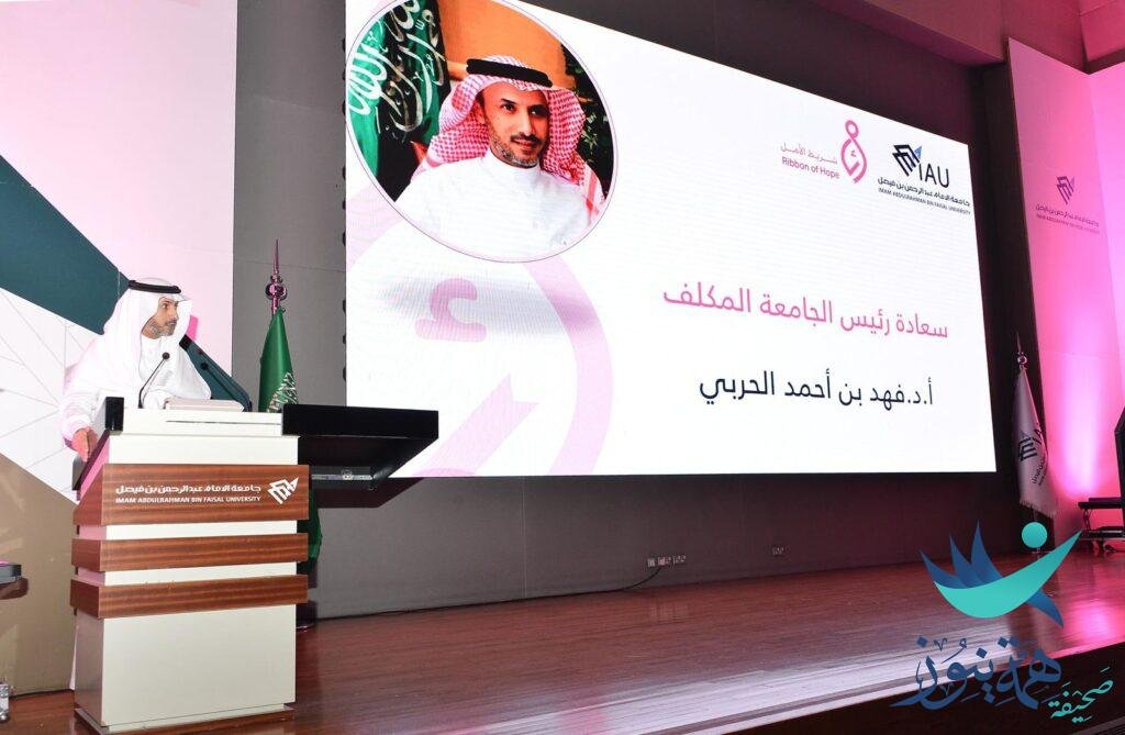 تزامنًا مع الشهر العالمي للتوعية بسرطان الثدي انطلقت بجامعة الإمام عبد الرحمن بن فيصل فعاليات المبادرة التوعوية للكشف المبكر عن سرطان الثدي والتي حملت شعار “شريط الأمل” وافتتحها سعادة رئيس الجامعة المكلف أ.د. فهد الحربي، ,والتي تهدف إلى تقليل معدلات الإصابة والوفيات بسرطان الثدي من خلال التوعية المجتمعية والكشف المبكر، وتسهيل الوصول إلى رعاية صحية ذات جودة، كما تسعى إلى تمكين النساء بالمعرفة والموارد اللازمة لتعزيز صحة الثدي، وبناء وتعزيز الشراكات لضمان الوصول العادل للرعاية الصحية بين الفئات المستهدفة لمجتمع المنطقة الشرقية، والحرم الجامعي (الدمام، الخبر، الظهران، الجبيل)..