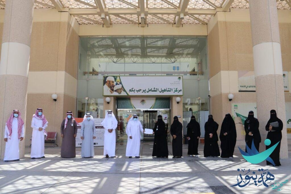 حيث بدأت الحميزي زياراتها التفقدية في أقسام المركز واطلعت على سير العمل والخدمة المقدمة للاشخاص ذوي الإعاقة ، و نقلت بدورها شكر سعادة مدير عام فرع الوزارة الأستاذ/ عبدالرحمن المقبل ، على الجهود المبذولة في خدمة المستفيدين من الاشخاص ذوي الإعاقة داخل المركز ، بعدها سلمت مدير المركز الأستاذ عبدالله المسعود و مديرة القسم النسائي الأستاذة عبير الحمد شهادة شكر و تقدير لفريق العمل بالمركز ذكور و إناث مقدمة من سعادة وكيل الوزارة للتأهيل والتوجيه الاجتماعي الدكتور / عبدالله بن أحمد الوهيبي ، نظير جهود المركز على ما قدموه من تعاون وجهود مثمرة في مشروع إنهاء العمل على دراسة كافة طلبات الانتظار للحالات وتوجيهها للخدمات المناسبة لها لما فيه من تحقيق الاهداف المنشودة لصالح ابنائنا وبناتنا من ذوي الإعاقة واندماجهم مع أسرهم والمجتمع ،