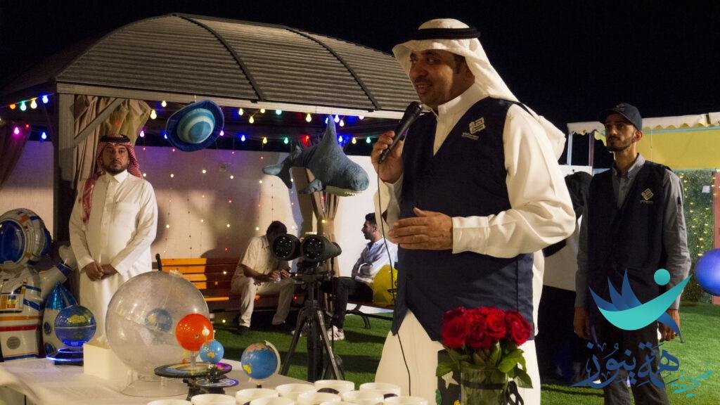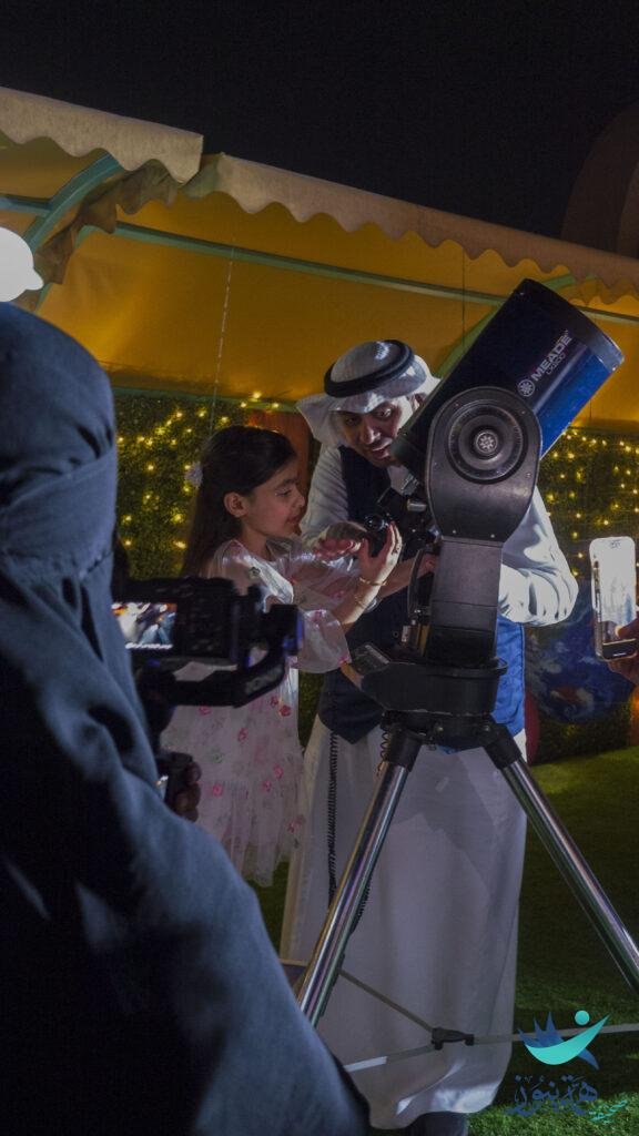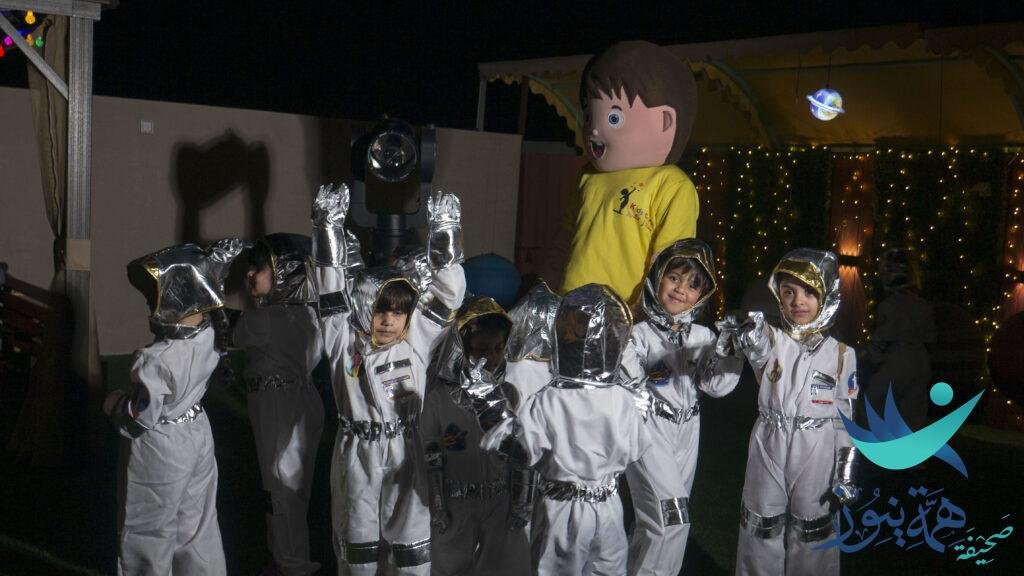 فيدرج فصل فضائي لم يسبق له نظير معهود تشهده عمالقة الحضور مسلطين الأضواء عليه هذا المساء ويرصده قريبًا الأطفال في أول تليسكوب يدخل لمملكتنا العربية السعودية