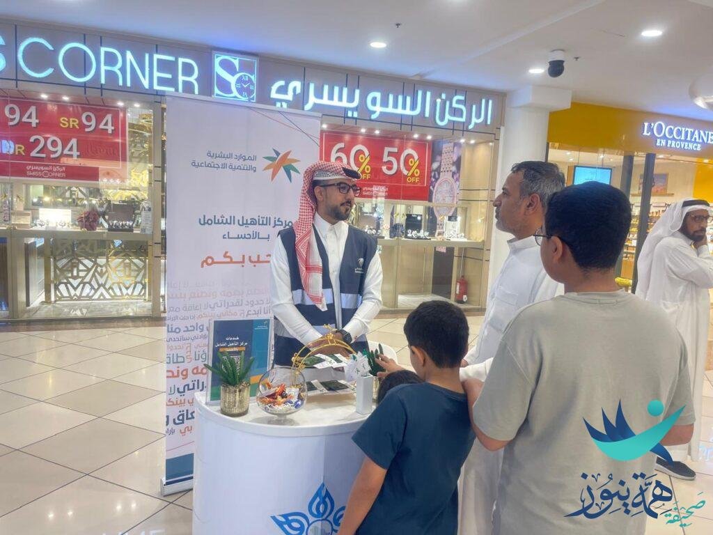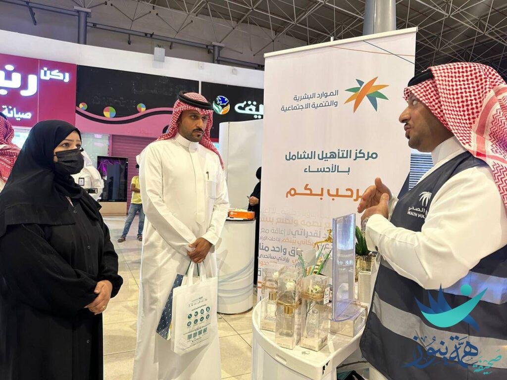 عرف ممثلي الركن من منسوبي المركز الزائرين على الخدمات التي تقدمها وزارة الموارد البشرية للأشخاص ذوي الإعاقة في مراكز التأهيل الشامل، الخدمات الإجتماعية والصحية والفنية والتأهيل المجتمعي، وكذلك التأهيل المهني في استقبال التدريب الخارجي والإعانة الفردية للمشاريع الخاصة بهذة الفئة