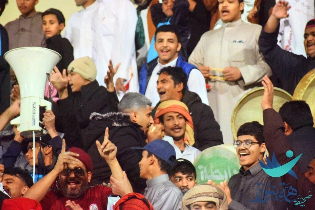 على الإثارة في المدرجات وتحفيز اللاعبين،لتقديم مالديهم من مهارات في وسط الملعب مما كان الأثر الكبير في الفوز من بعد الله وبجهود اللاعيبه والإدارة الشابه الواعية