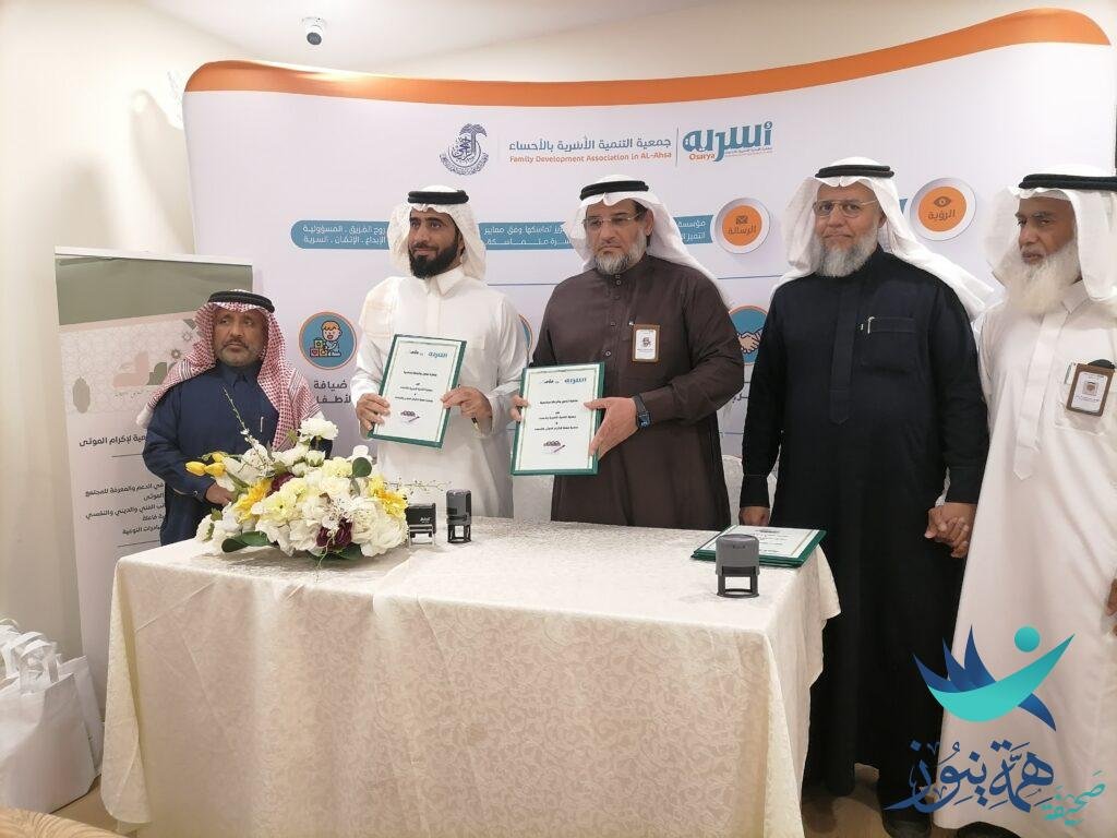 تم توقيع عدة شراكات مجتمعية بين جمعية التنمية الأسرية بالأحساء وثلاث جمعيات من مدينة العيون بمحافظة الأحساء وهم جمعية عطاء للخدمات المجتمعية وجمعية ادامه للعناية بالمساجد وجمعية مسك لإكرام الموتى