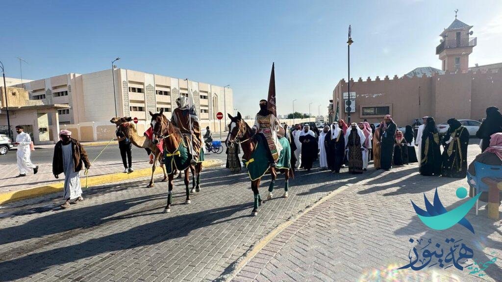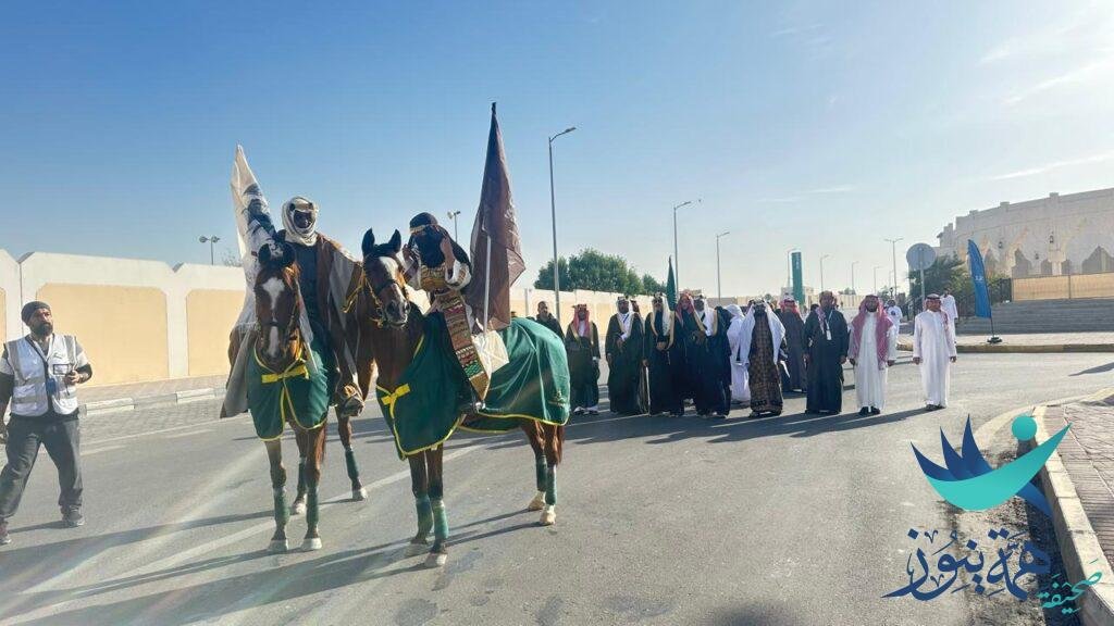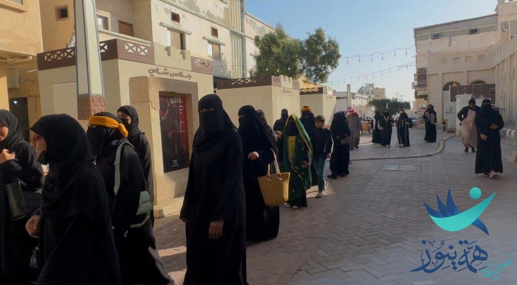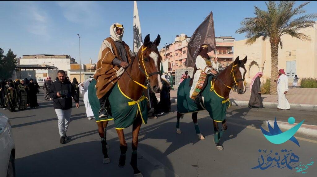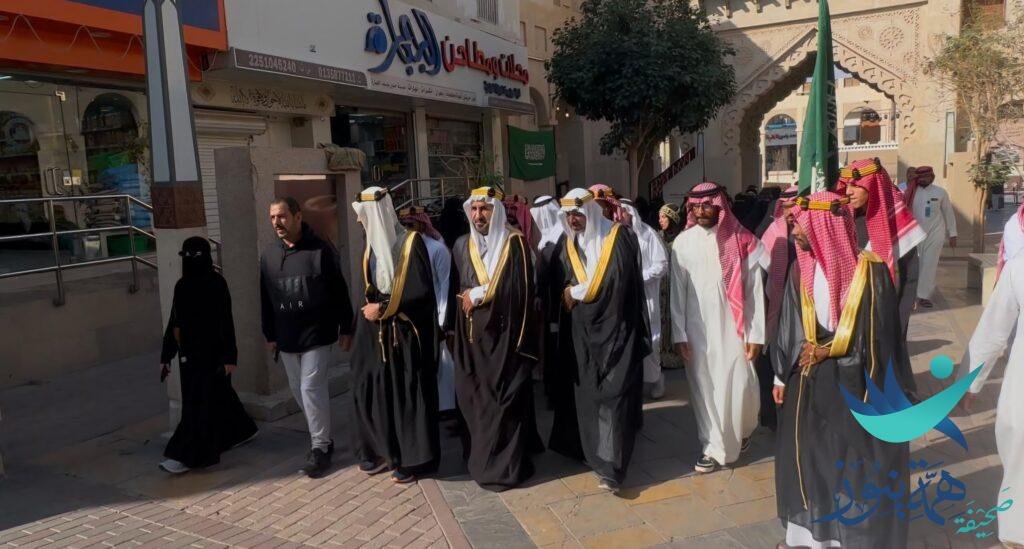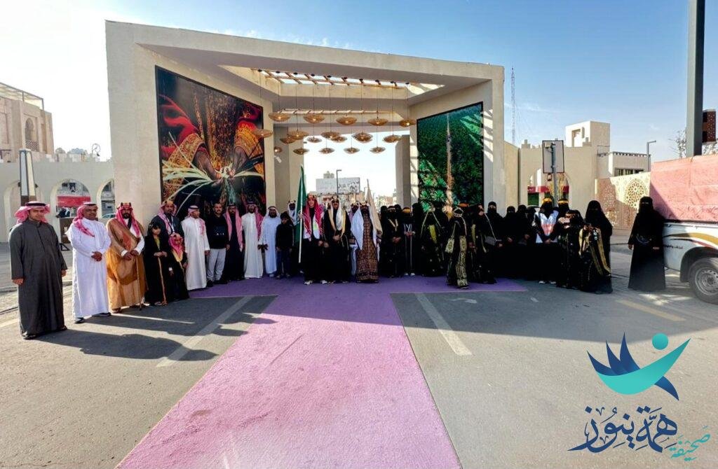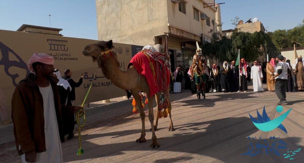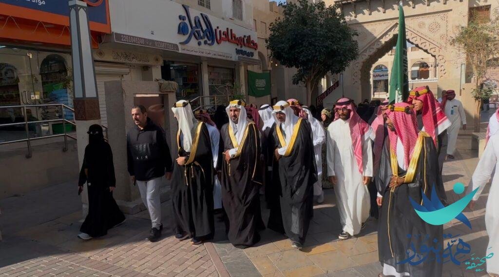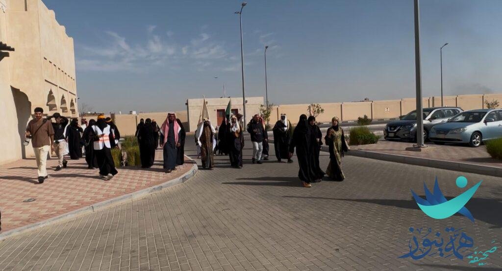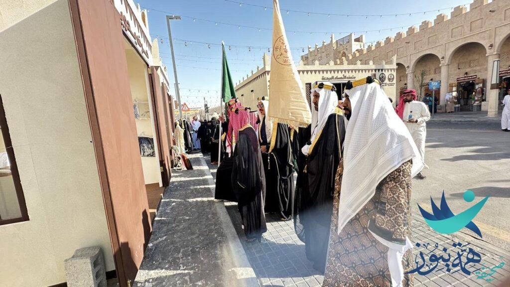 فبعد ان اكتمل عدد المشاركين والمشاركات ، تم أداء النشيد الوطني بعدها أعطت شارة البدء رئيسة الجمعية الاستاذة أماني العمير ويتقدم المسيرة الخيل العربية والإبل حيث مشى الجميع في حي الرفعة الجنوبية ومرورا بالقيصرية التي وقف عندها الجميع للاستماع إلى شرح من أصحاب الحرف المتواجدين مثل صناعة المشالح وصنعة النجار وصناعة الزخارف الجصية ..