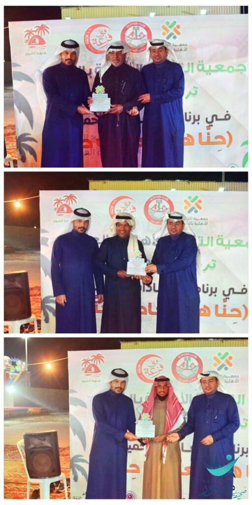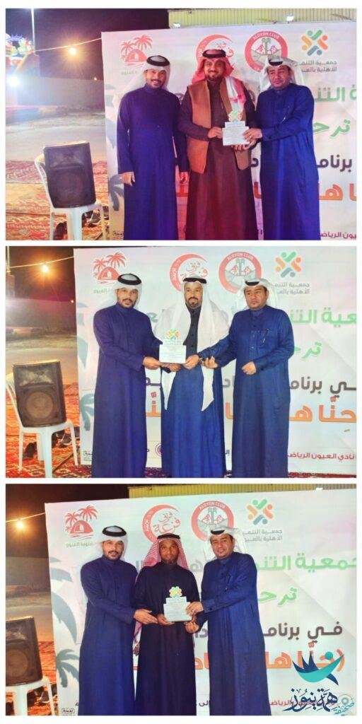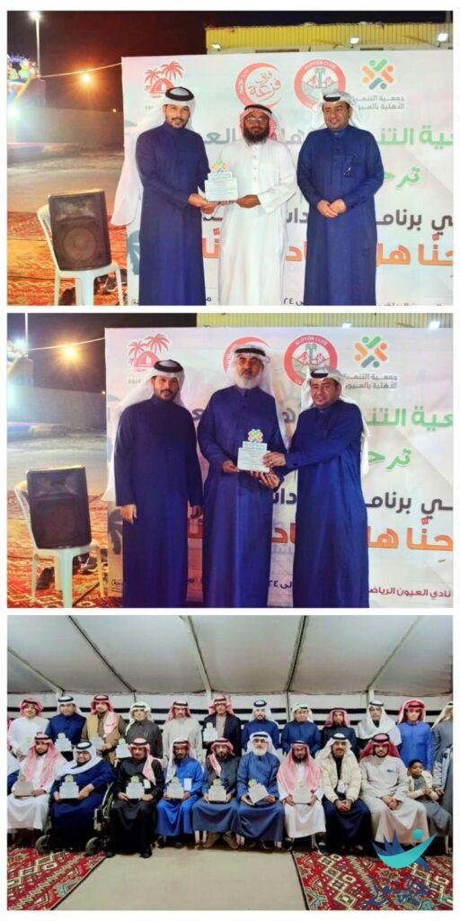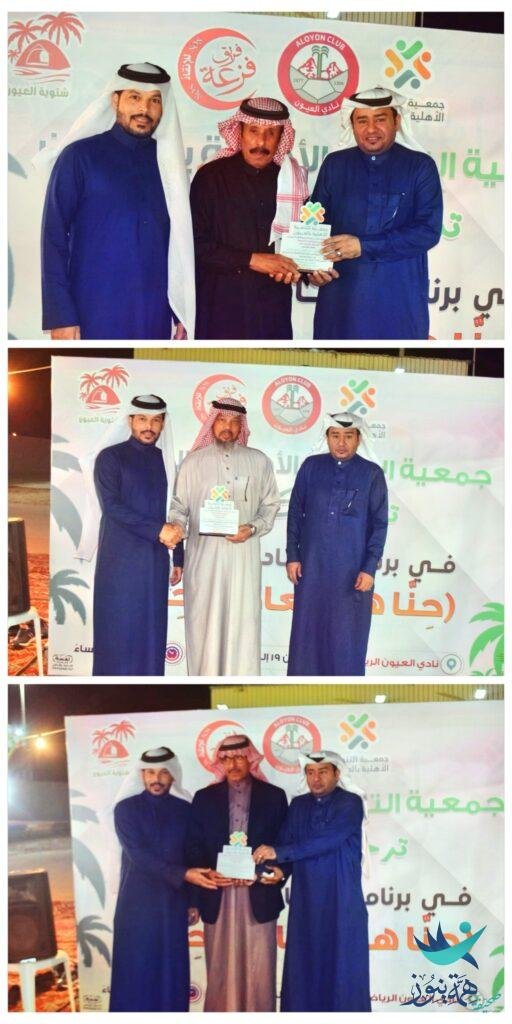 كرمت جمعية التنمية الأهلية بالعيون عدد من رجال أهالي مدينة العيون بمحافظة الأحساء وذلك بحضور عمدة مدينة العيون الأستاذ حمد بن علي الحربي نظيرا لجهودهم المبذولة والمميزة في مشاركاتهم الفاعلة ادارياوميدانيا في تنمية المجتمع في مختلف المجالات وكل في مجاله على مستوى مدينةالعيون بالأحساء بشكل خاص والاحساء بشكل عام في برنامج العادات الحميدة (حنا هل العادات حنا) وذلك في خيمة المضياف التي نصبتها جمعية التنمية الأهلية بالعيون في مقر شتويةالعيون المقامه في نادي العيون السعودي بمدينةالعيون بالأحساء…
