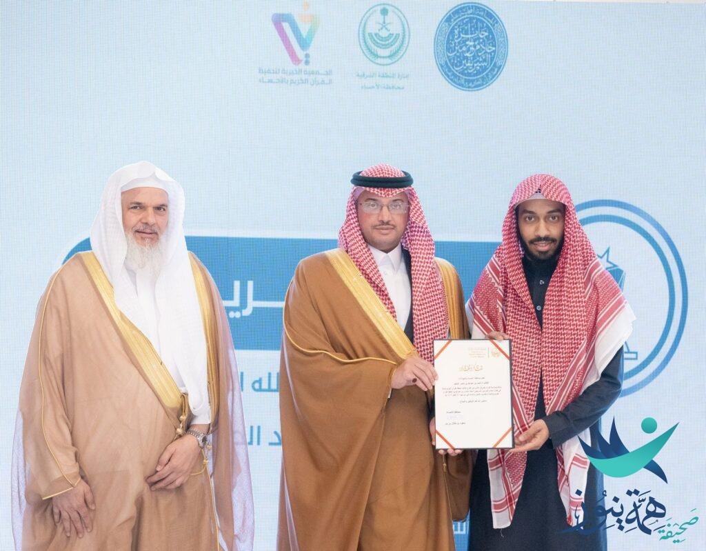 وهنّأ سموّه الطالب أحمد بن عبدالله الناجم الحاصل على المركز الثاني في الفرع الثالث (حفظ القرآن الكريم كاملاً)، ووالد الطالبة سارة بنت محمد بن إبراهيم الحيمود الحاصلة على المركز الخامس في الفرع السادس، مشيدًا بجهود الجمعية في إعداد وتأهيل الطلاب والطالبات للمشاركة في هذه المسابقة.