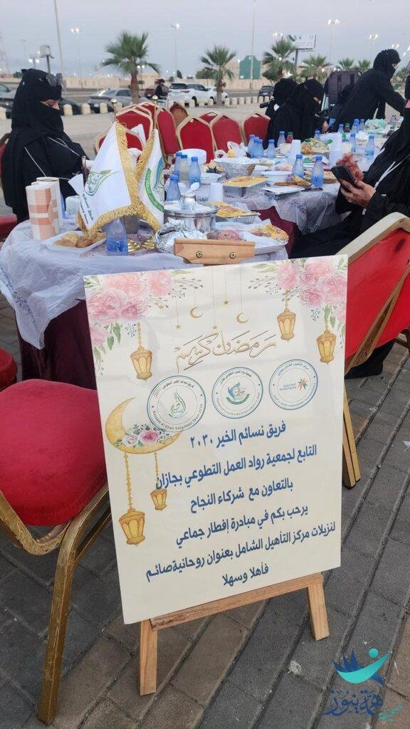 نفذت جمعية رواد العمل التطوعي بجازان مبادرة بعنوان ” روحانية صائم مع نسائم الخير” ممثلة فريق نسائم الخير التطوعي٢٠٣٠ ، الإفطار الجماعي لمركز التأهيل الشامل للإناث بالكورنيش الجنوبي بجازان بقيادة قائدة الفريق الأستاذة ليلى حمد الأمير ، ونائبتها الأستاذة ربوعة مجممي مجممي وعدد من عضوات الفريق والتأهيل الشامل وكان الإفطار بتنسيق وتحضير مع شركاء النجاح روضة وأبتدائية الحمرة للطفولة المبكرة و مكتب تعليم العيدابي وجنة الفيتامينات للعصائر ومطعم رشة مندي ومطعم مشاوي 33.