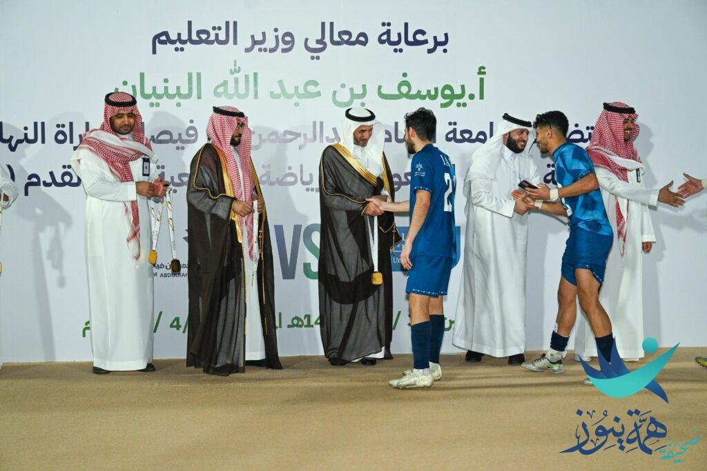 برعاية معالي وزير التعليم الأستاذ يوسف بن عبدالله البنيان، وبحضور سعادة رئيس جامعة الإمام عبدالرحمن بن فيصل المكلف الأستاذ الدكتور فهد بن أحمد الحربي، وسعادة الدكتور خالد المزيني رئيس الاتحاد السعودي للرياضة الجامعية، تُوِّج منتخب جامعة الإمام عبدالرحمن بن فيصل بطلاً لبطولة الاتحاد السعودي للرياضة الجامعية لكرة القدم (أ).