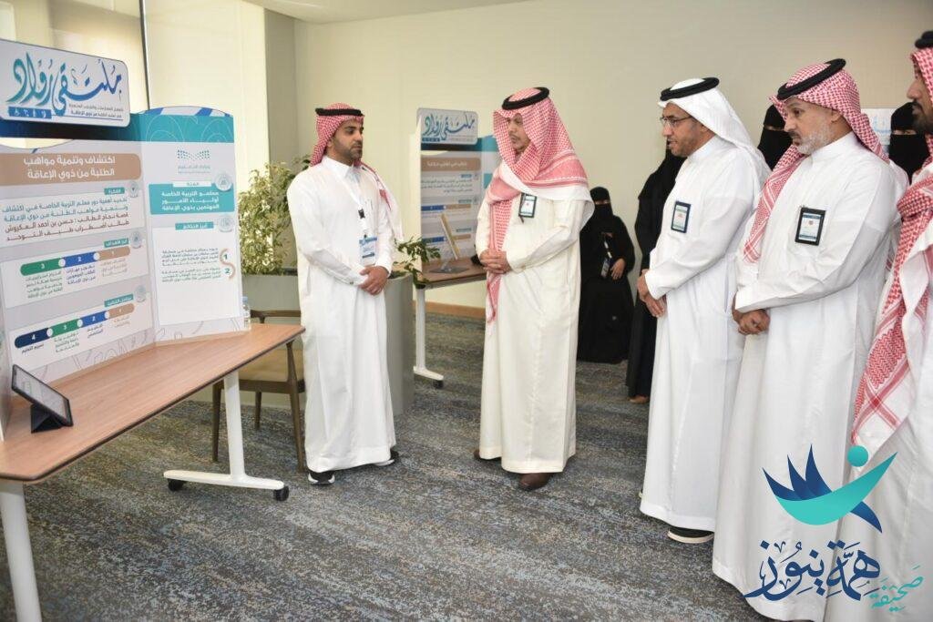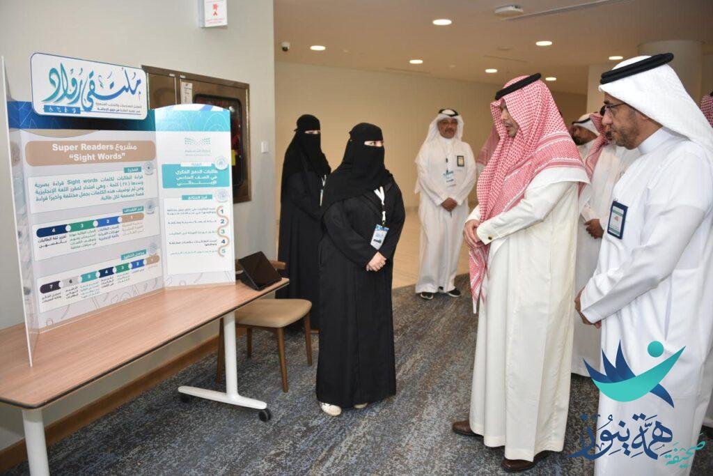 وكان مدير التعليم قد افتتح المعرض المصاحب للملتقى، رافقه خلالها مساعدا المدير العام للشؤون التعليمية والخدمات الدكتور عبدالرحمن الفلاح ، والأستاذ زيدان الشمري، واستمعوا خلال الجولة إلى شرح عن أبرز الأركان التي ضمها المعرض، ومنها ركن لإنشاء المعلمة بيبي الدخلان لمكتبة رقمية لمادة لغتي لطالبات صعوبات التعليم، وركن Super Readers للمعلمة لولوة الملحم القائم على قراءة الطالبات لكلمات Sight words قراءة بصرية وتوظيفها بجمل مختلفة، وركن مخصص لكتاب في لغتي حكاية للمعلمة ياقوته السماعيل، ومشروع اكتشاف وتنمية مواهب الطلبة من ذوي الإعاقة للمعلم علي الحكيم، ومشروع إنشاء قادة بيانات تشاركية تحمل عنوان( معلوماتي تدعمني) للمعلمة أسماء الزهراني.
