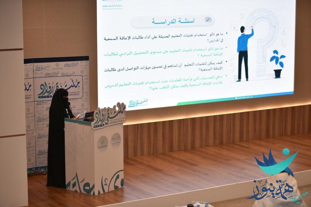 بعدها قدمت 6 أوراق علمية متنوعة ومنها استخدام الذكاء الاصطناعي في تدريس الطلبة من ذوي الإعاقة، واستخدام تقنيات التعليم في تدريس الطالبات ذوات الإعاقة السمعية لتحسين أدائهم الأكاديمي، كما عرضت تجارب تطوير الفهم القرائي لطلاي ذوي صعوبات التعلم.