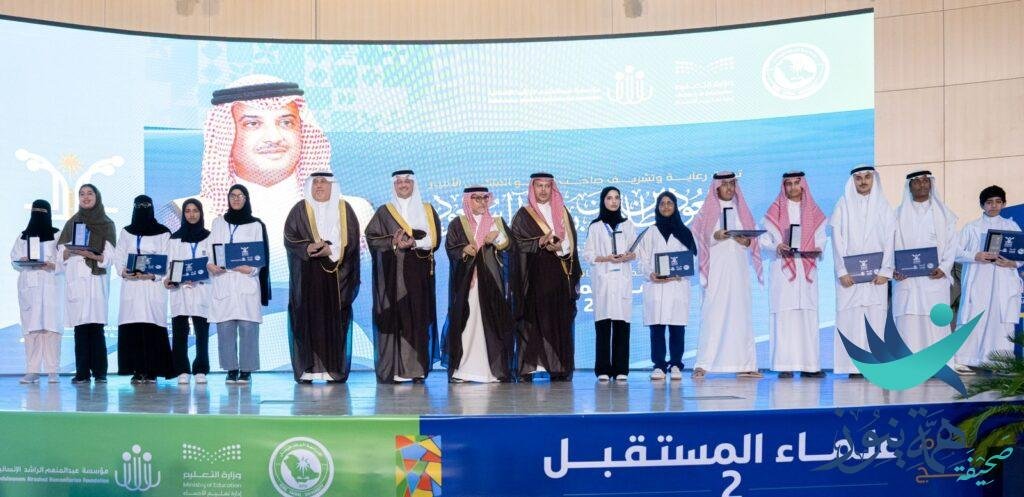 رعى صاحب السمو الملكي الأمير سعود بن طلال بن بدر محافظ الأحساء ، مساء أمس ” الاثنين ” ، حفل ختام النسخة الثانية من برنامج “علماء المستقبل”، الذي تنظمه جامعة الملك فيصل ممثلة في إدارة تطوير الشراكة المجتمعية والمركز الوطني لأبحاث الموهبة والإبداع، بالشراكة مع مؤسسة عبد المنعم الراشد الإنسانية، وبدعم من الإدارة العامة للتعليم بمحافظة الأحساء، وذلك على مسرح كلية الهندسة.