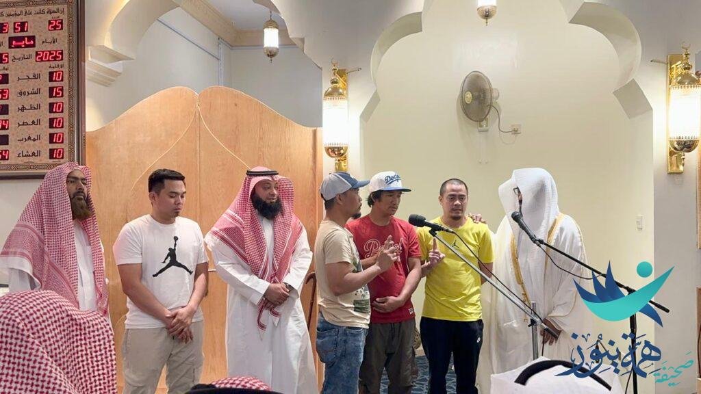 وقد تولى إمام وخطيب جامع الأبرار، فضيلة الشيخ عبدالرحمن بن عبدالعزيز العقار، تلقين الشهادتين للمسلمين الجدد، بحضور المدير التنفيذي لجمعية “بشرى”، المهندس حمد بن عبدالرحمن الشريدة.