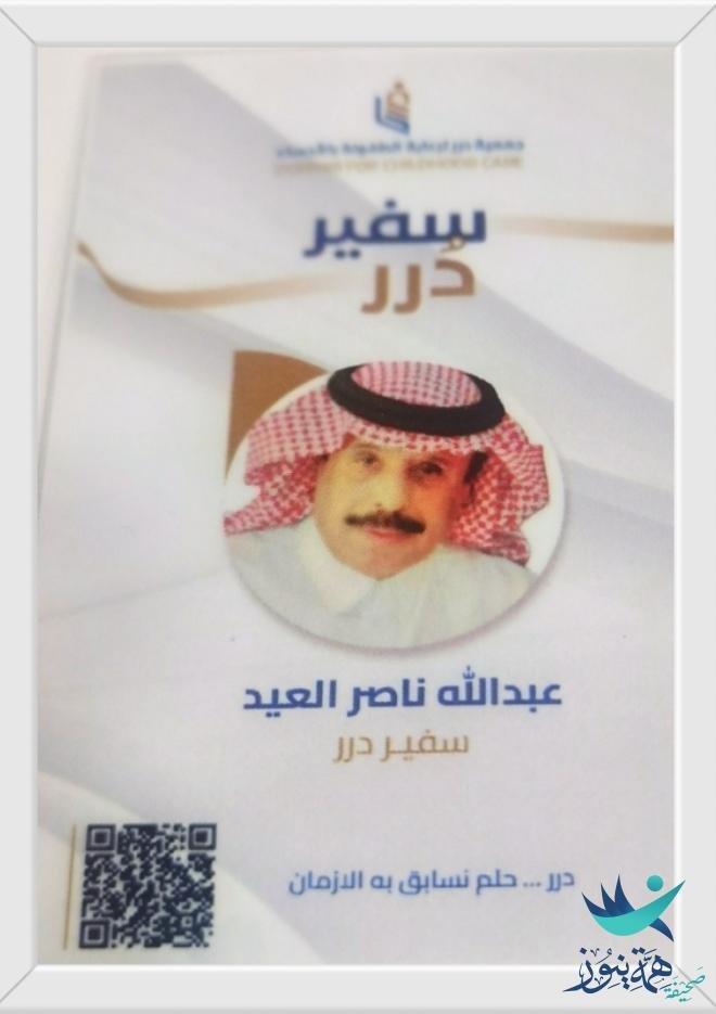 بما اني احد سفراء جمعية دُرر لرعاية الطفولة بالأحساء ويسعدني ذلك والذي اعتبرة تكليف وليس بتشريف